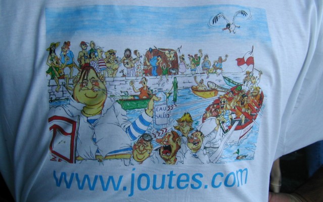 Présentation du T-shirt du site par notre top model Yannick BAEZA. (Quel est donc ce jouteur qui boit de l'eau salée ?)